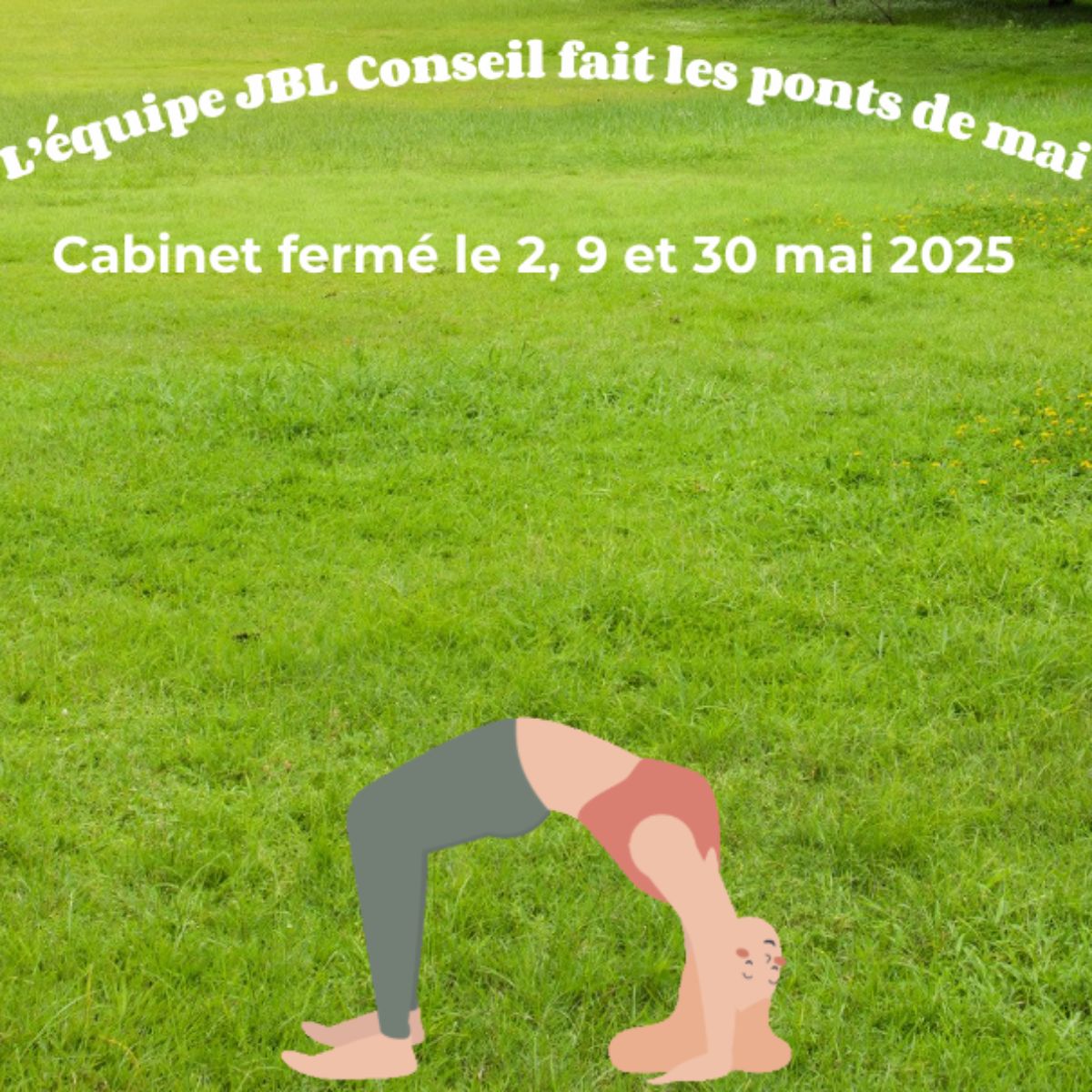 En raison des jours fériés du mois de mai, notre cabinet sera exceptionnellement fermé les vendredis 2, 9 et 30 mai 2025.