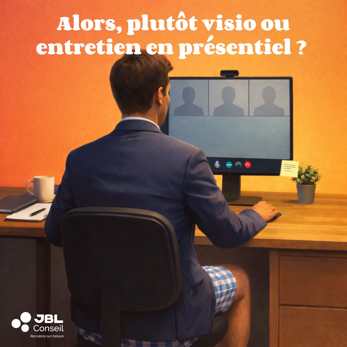 Chez JBL CONSEIL, nous intégrons pleinement la visio pour sa praticité tout en recommandant, dès que le processus se précise, au moins un entretien en présentiel entre le candidat et l’entreprise.
